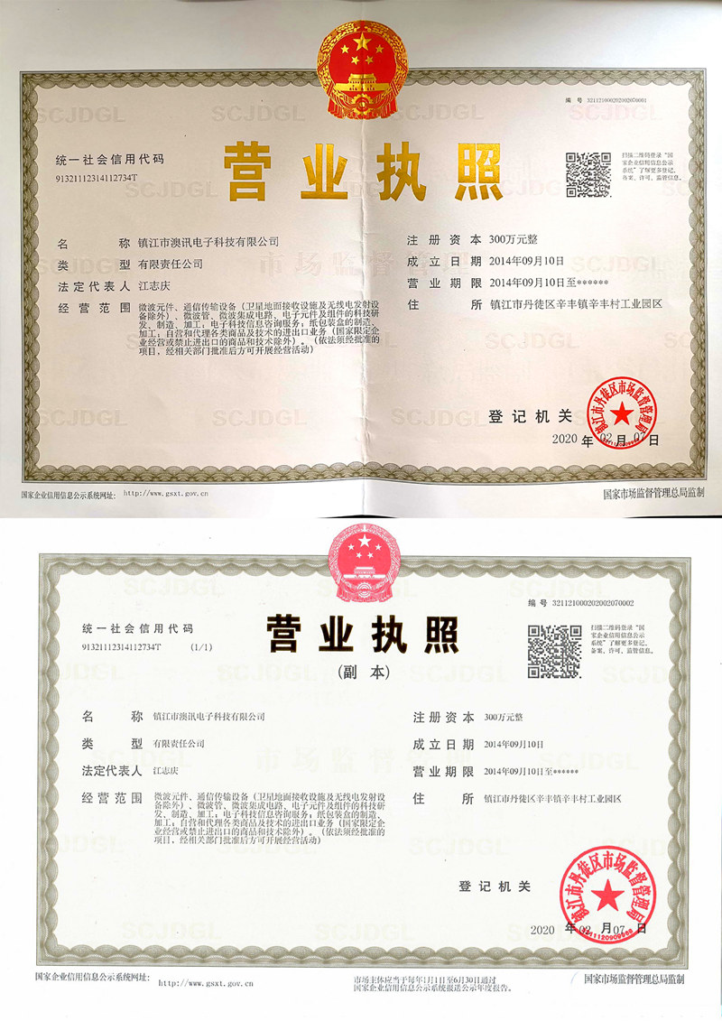 鎮江市澳訊電子科技有限公司,占地面積5000平方米,現有員工近百名,各類技術人員占15%。我公司專業從事射頻同軸連接器的設計、研制、開發、生產、銷售。